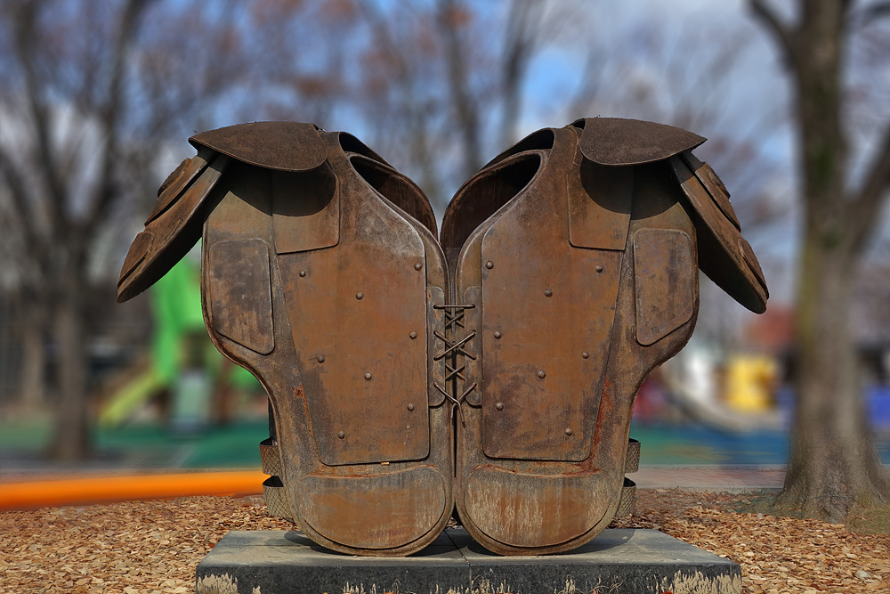 작가가 추구해 온 "현재의 고고학" 씨리즈 중의 마지막 작품이다.갑옷과 투구의 형상을 통해 과거와 현재를 연결하는 교량의 이미지를 표현하였다.갑옷에서 보이는 미식추구 유니폼의 가슴받이 형상은 갑옷의 주인공인 영웅의 신화를 나타낸다.<2025.12.14. 올림픽공원>