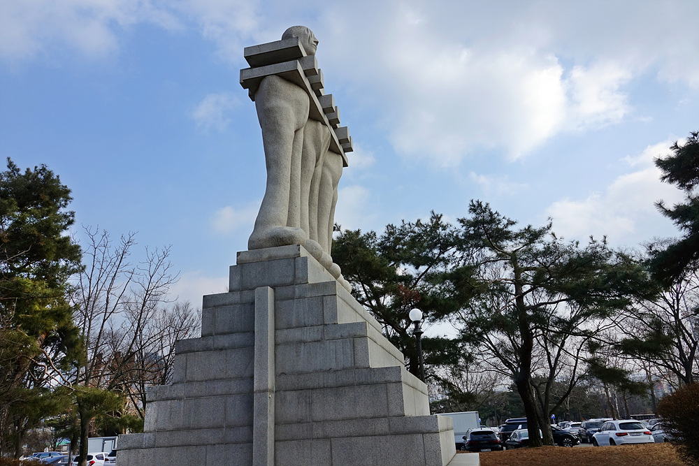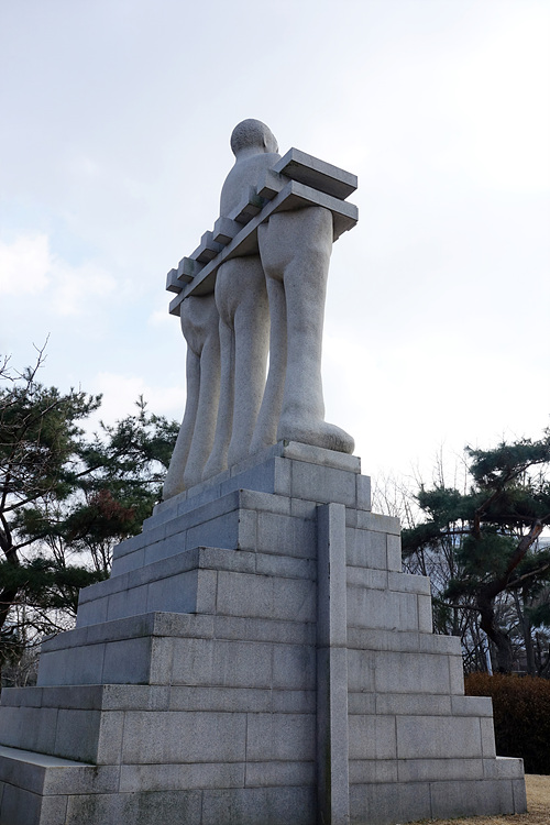 작품 맨 상단에 위치한 승리자와 그를 떠받들고 있는 얼굴없는 군중들은 결국 사라져버릴 것을 영원할 것이라고 생각하며 좆는 우리의 헛된 믿음과 욕망을 나타낸다.<2026.2.12. 올림픽공원>