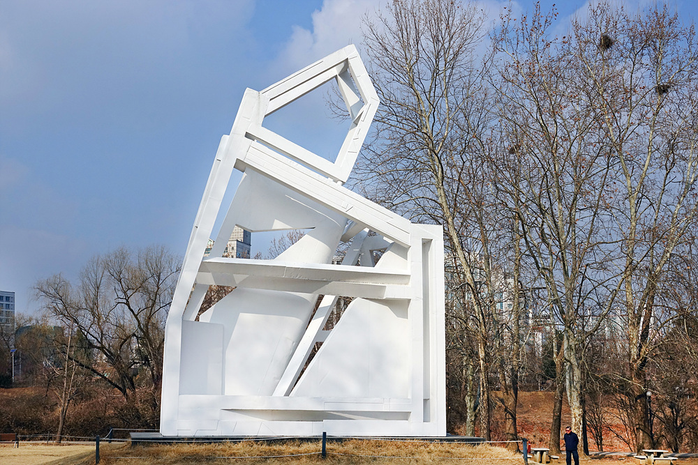 이 작품은 작가의 <트로이의 문방구>라는 작품을 12배 확대한 것으로 재래식 거푸집 공법으로 만들어졌다, 나무 거푸집의 표면에 새겨진 자유로운 무늬의 나뭇잎이 시멘트 표면에 요철을 형성하고 있다.작가는 작품이 완성되었을 때 제작 초기의 목적과 결의는 사라지고, 다시 수정할 수도 없지만 대신 "우상"으로서의 힘을 갖게 된다고 말한다 (2026.2.12.올림픽공원)
