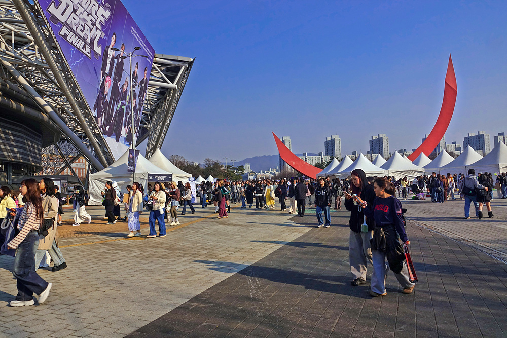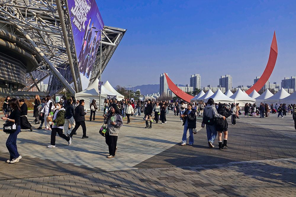 화창한 봄날이기도 하지만 K POP 공연이 열리기 때문이다,